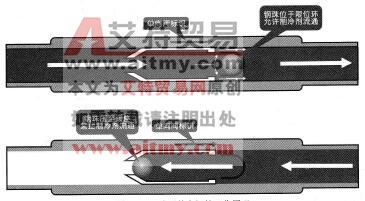 简介如图 3-114 所示为针形单向阀的工作原理。当制冷剂流向与针形单向阀标识相同时,尼龙阀针被制冷剂推到限位环内,单向阀导通,允许制冷剂流过;当制冷剂流向与标识相反时,尼龙阀