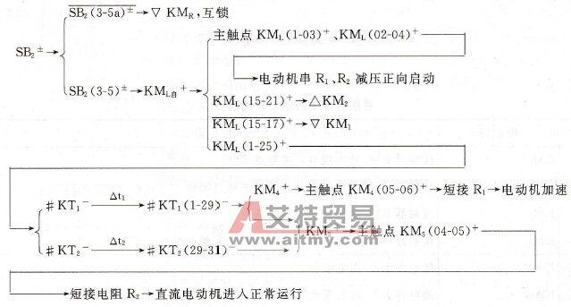 KT2的延时时间大于KT1的延时时间。 (2)正向启动。