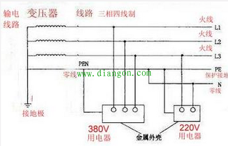 简介三相四线中最下面一根为零线,在低压配电网中,输电线路一般采用三相四线制,其中三条线路分别代表A,B,C三相,另一条是中性线N,区别于零线,在进入用户的单相输电线路中,有两