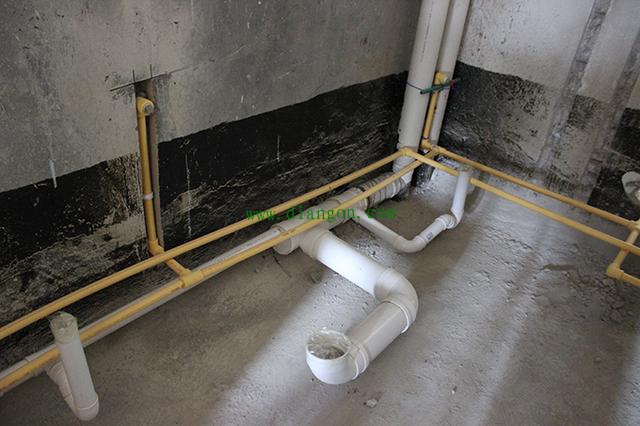 3、水路走完后要做打压试验,然后再做防水处理。(下沉式卫生间一定要做二次排水)