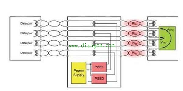 网线的阻抗越低传输距离越远,所以首先要保证网线的质量,购买正品,推荐使用超五类网线,普通的5类线数据信号传输距离大概是100米左右。由于PoE标准有两种:IEEE802.af和IEEE802.3at标准。它们对超五类网线要求不同,不同主要体现在等效阻抗上。如100米的超五类网线,IEEE802.3at的等效阻抗须小于12.5欧姆,IEEE802.3af则须小于20欧姆。