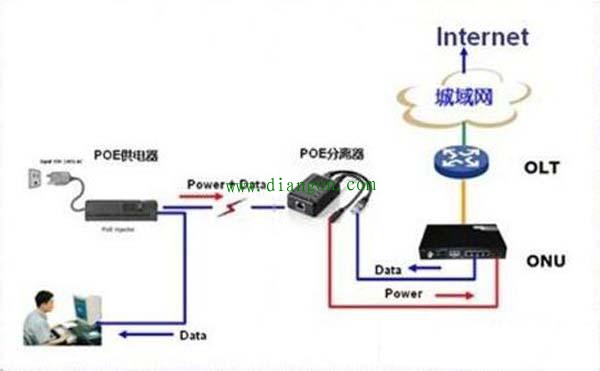 这种方案交换机出来接PoE供电器,再接PoE分离器,最后传输给终端。