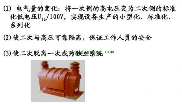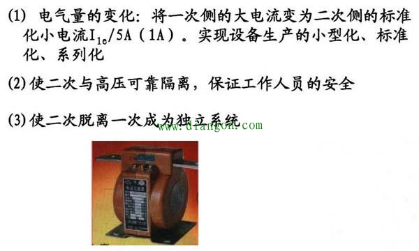 “互感器”又称为仪用变压器,是电流互感器和电压互感器的统称。互感器是电力系统中供测量仪表、继电保护和自动装置等二次设备获取相关电气一次设备回路信息的传感器。能将高电压变成低电压、大电流变成小电流,用于量测或保护系统。其功能主要是将高电压或大电流按比例变换成标准低电压(100V)或标准小电流(5A或1A,均指额定值),以便实现测量仪表、保护设备及自动控制设备的标准化、小型化。同时互感器还可用来隔开高电压系统,以保证人身和设备的安全。