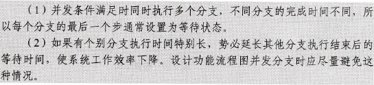 图7.11 并行结构 并行结构的特点是: ● 并行结构的开始用水平双线将各分支相连。 ● 双水平线上方需要连接一个转移,转移所对应的转移条件称公共转移条件。如果公共转移条件满足,则同时进行下面所有分支;水平线下方一般不必再有转移,特殊情况下允许某些分支有自己的特殊转移条件,它决定了当公共转移条件满足时,是否执行这些分支。 ● 并行结构的结束用水平双线将各分支汇合。水平单线上方一般没有转移,下方的干支上有一个转移。